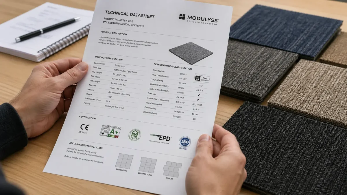 Acheter un tapis pour un local professionnel sans vérifier les normes, c’est prendre le risque de non-conformité à la réception d’un ERP, d’un contrôle de sécurité ou d’un audit qualité. Les fiches techniques regorgent de sigles — EN 13501-1, Cfl-s1, classe 33, A+, Ecolabel — qui semblent accessoires mais qui encadrent précisément l’aptitude à l’usage. Voici comment les lire et comment les utiliser comme critères de choix.